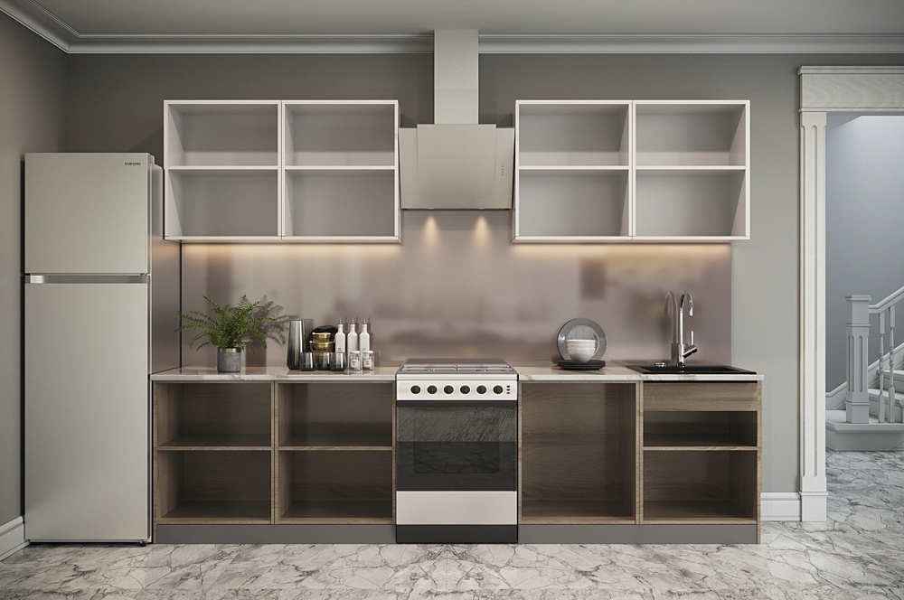 Ручки, столешница, стеновая панель, мойка, смеситель и бытовая техника продаются отдельно.
