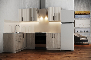 Модульные кухни - это готовые решения в наличии на нашем складе, которые состоят из отдельных корпусов разных размеров, а так же фасадов разных цветов и фактур. Из этого множества компонентов вам необходимо выбрать те модули, которые подойдут вам по размеру и дизайну или воспользоваться услугами нашего замерщика.